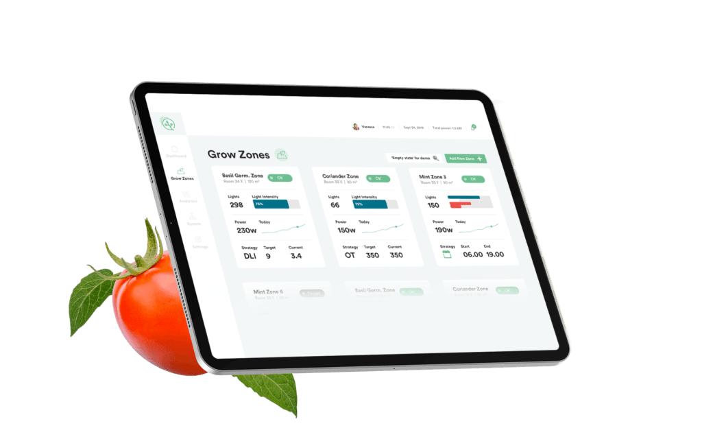 Organize your light strategies by crop type or production stage. Group lights and create light zones to standardize schedules and settings.
